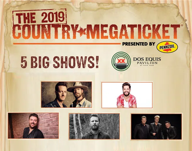 Benefits of the 2019 Country Megaticket include a ticket to each of the five concerts and the ability to secure tickets before they go on sale to the general public.