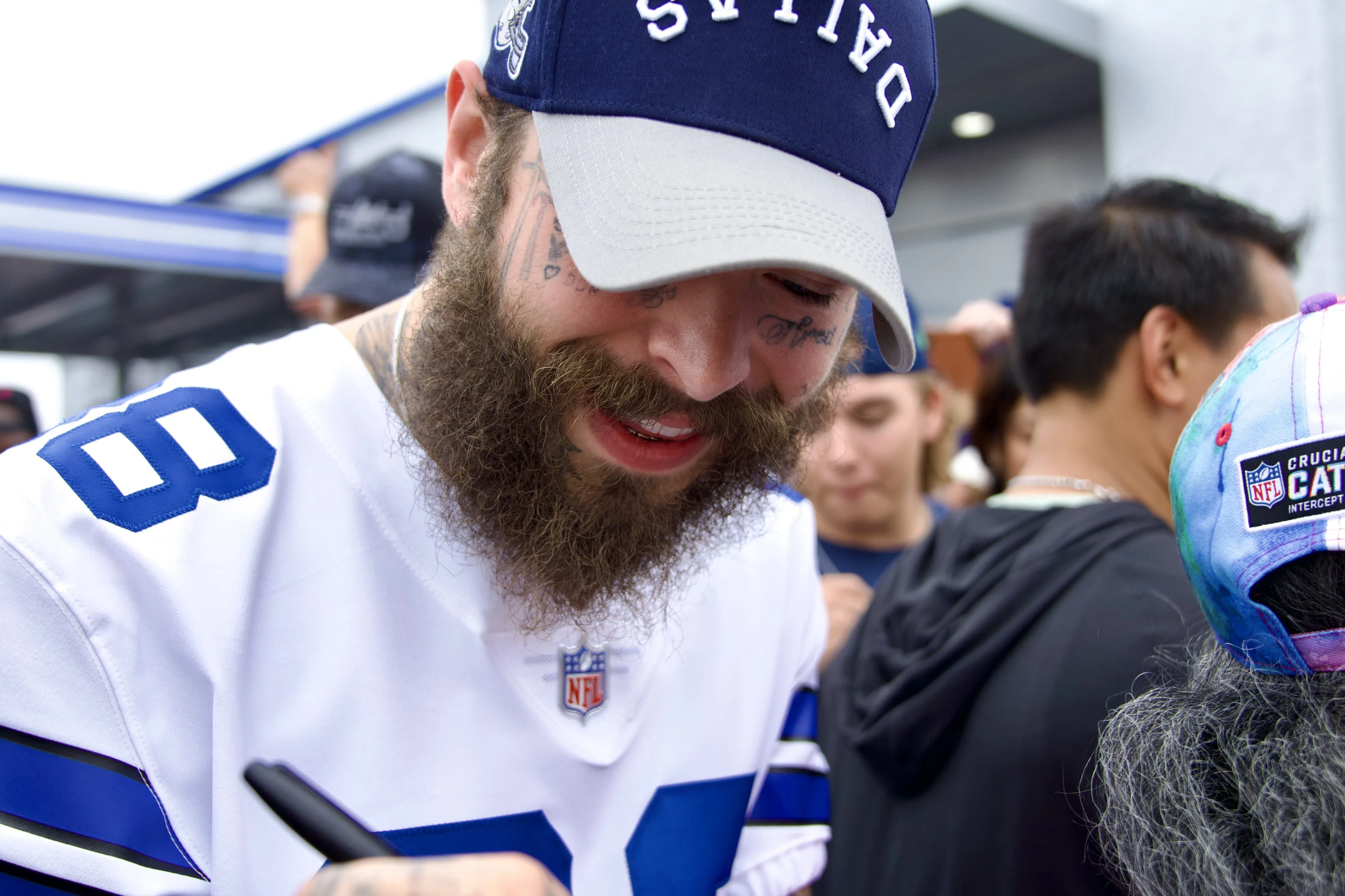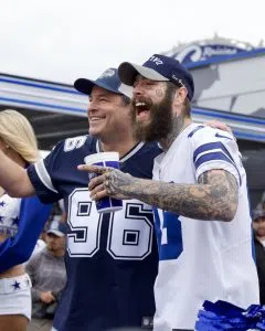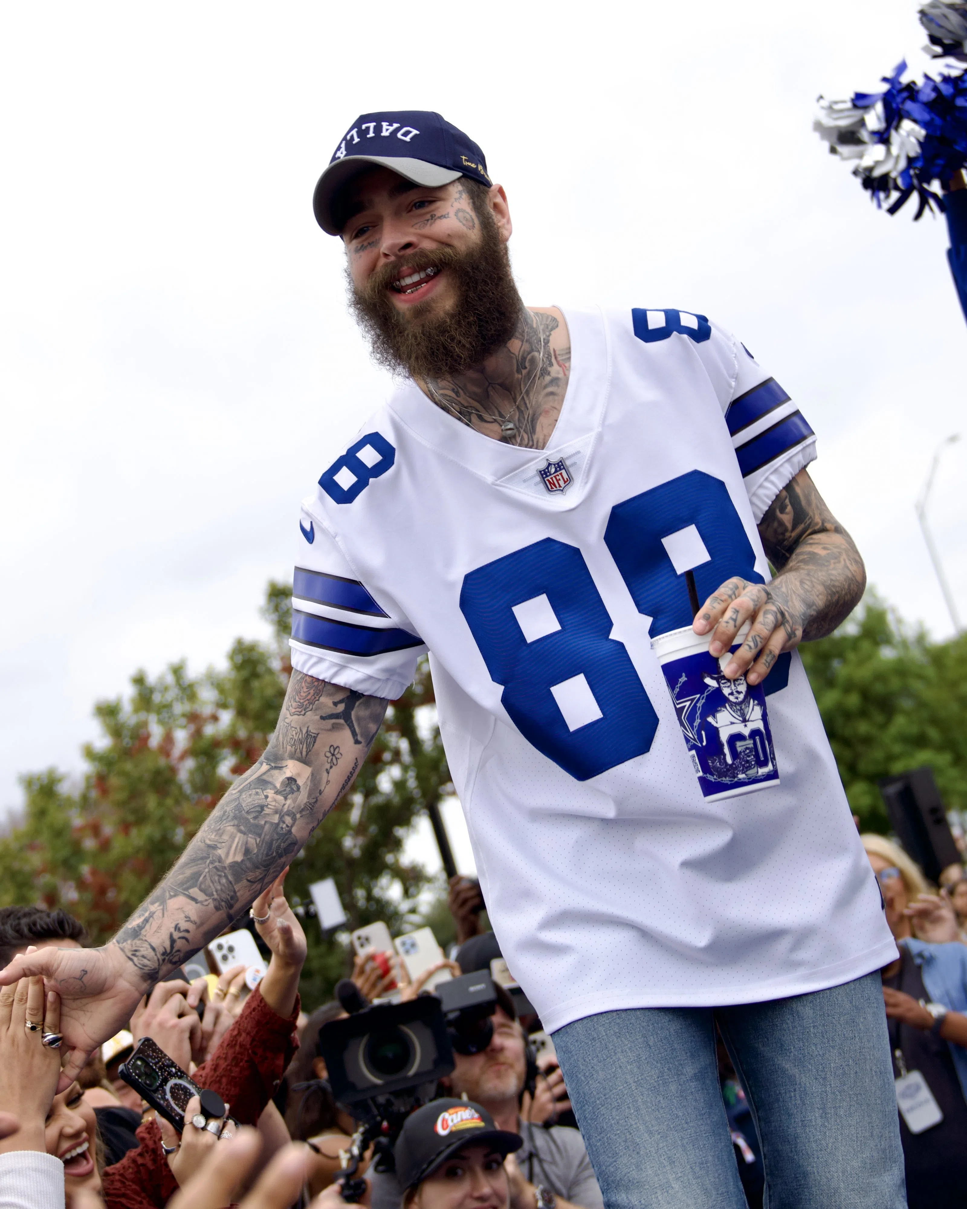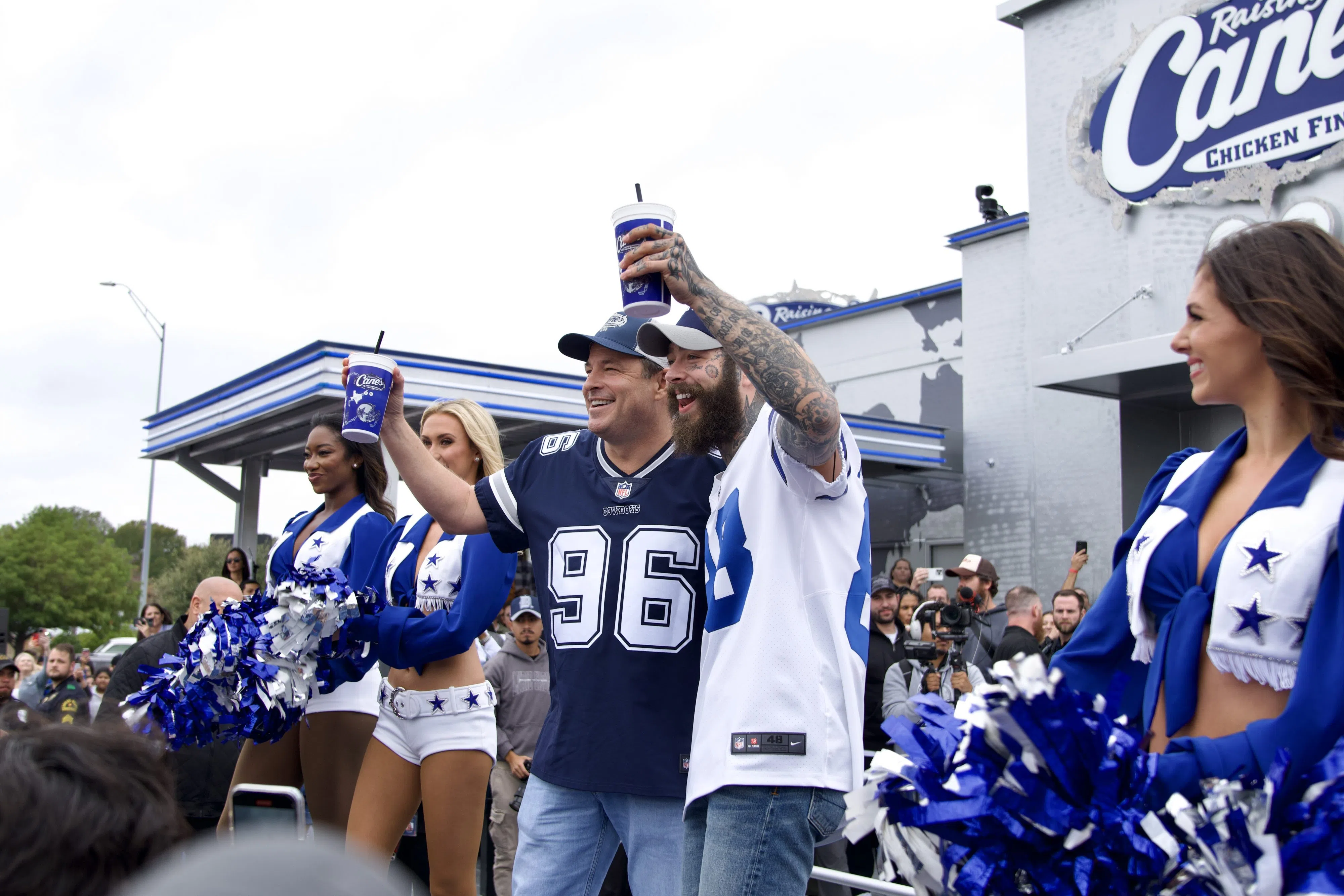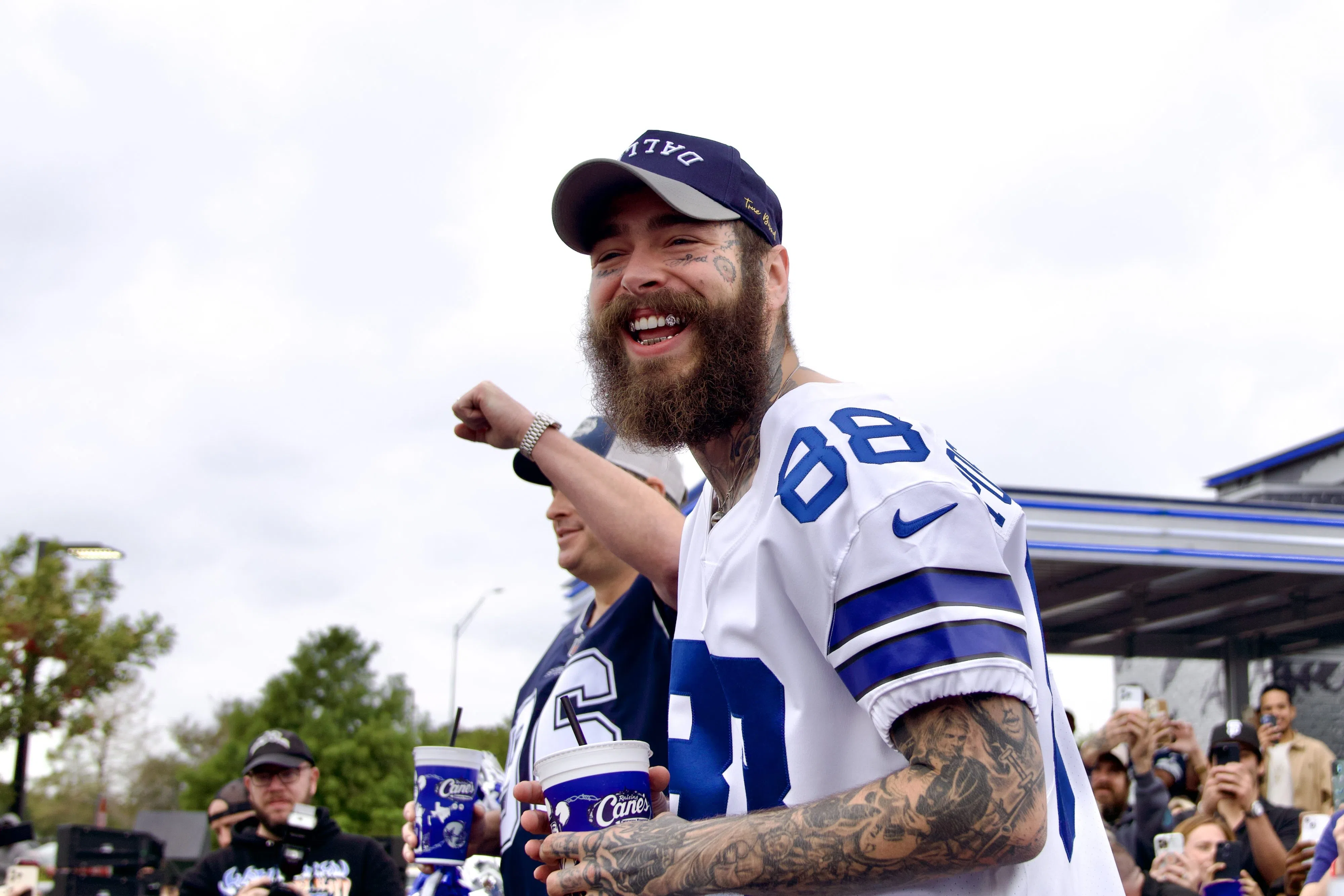 Post Malone is back in DFW! He stopped by the Grand Opening of Raising Canes that is decked out in Dallas Cowboys colors!
