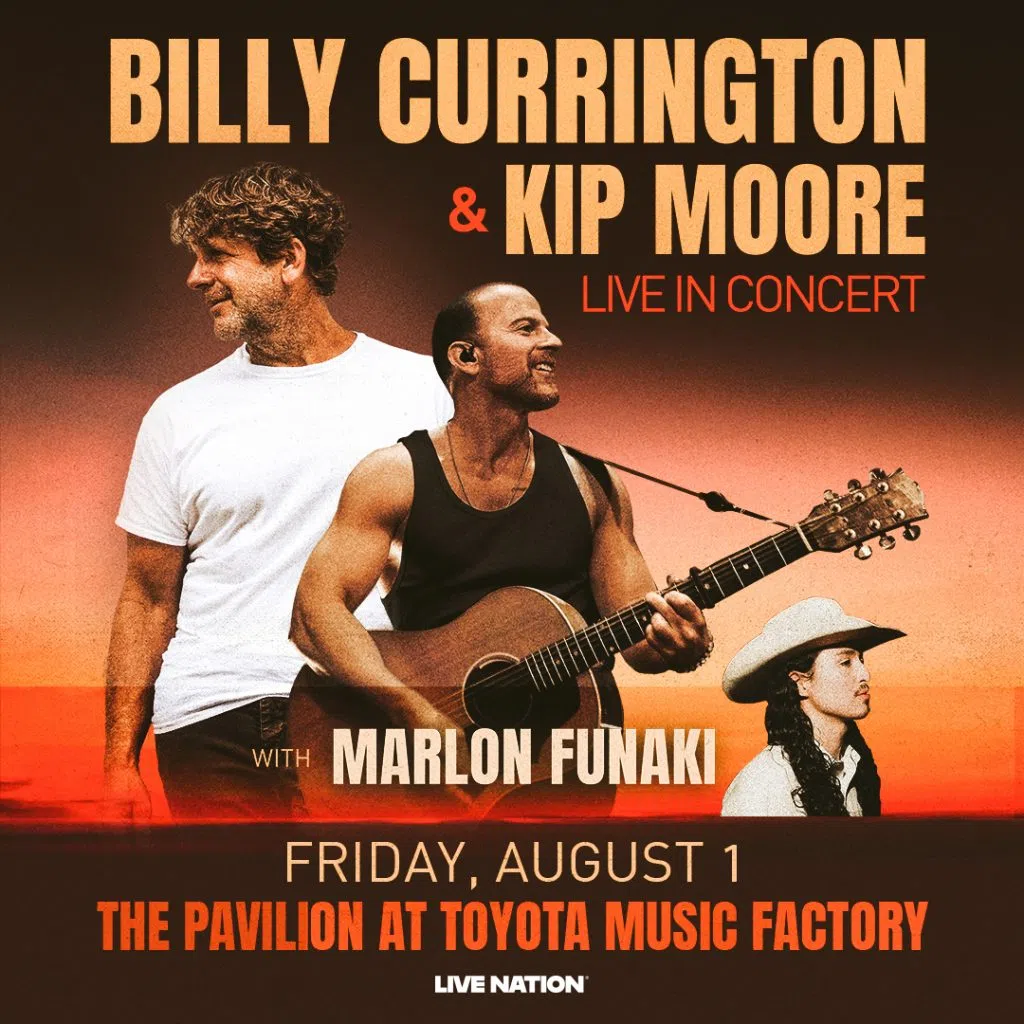 Just announced! Billy Currington and Kip Moore are joining forces and heading to DFW! Catch them at The Pavilion at Toyota Music Factory on Friday, August 1st!